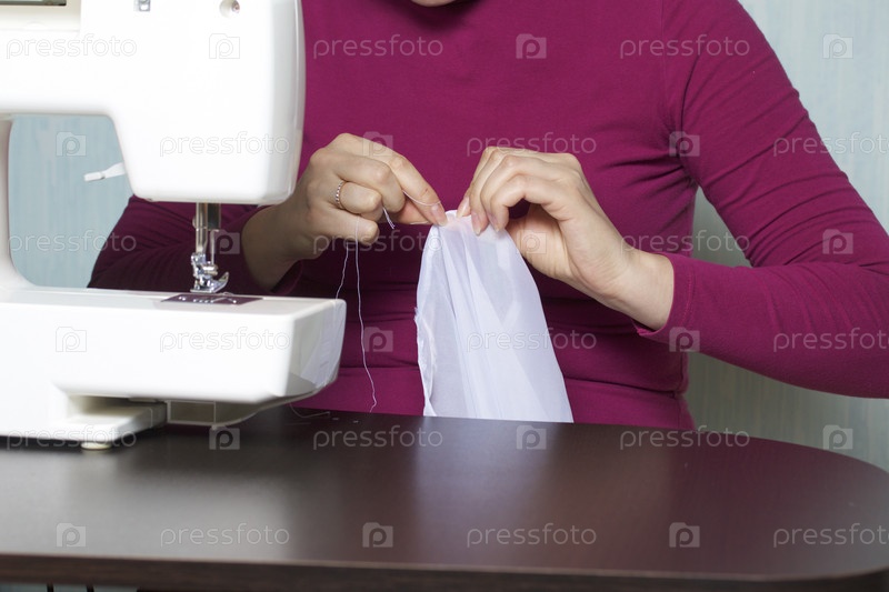 Женщина работает на швейной машинке