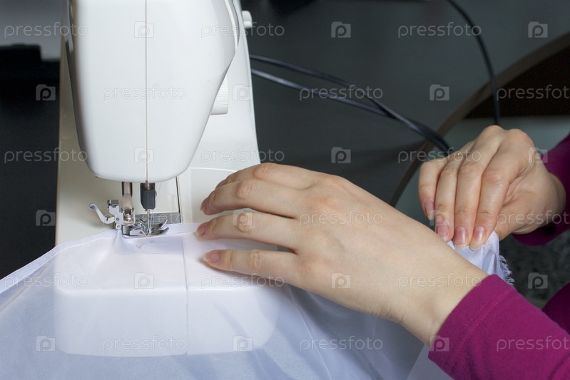 Женщина работает на швейной машинке