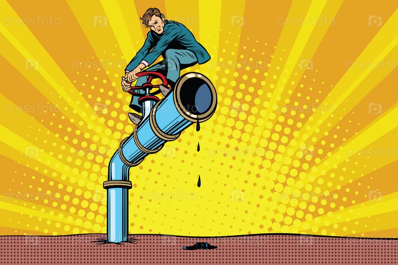 Бизнесмен закрывает нефтяную трубу
