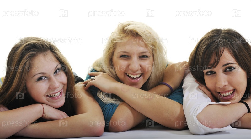 Счастливые девушки, изолированы на белом фоне