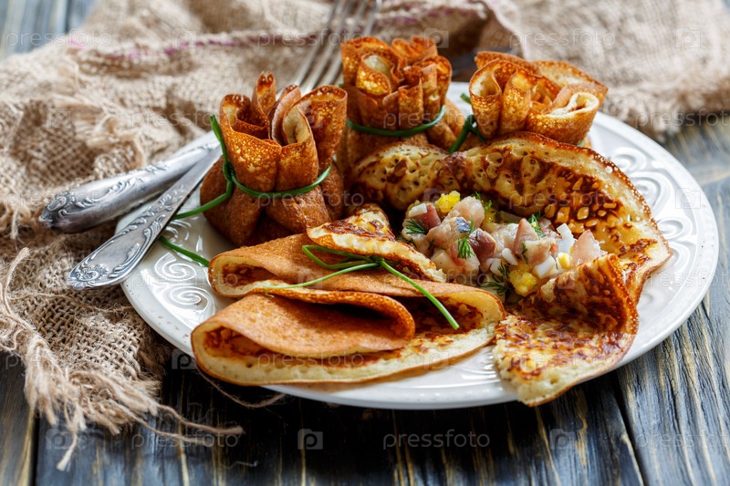 Блинчики, фаршированные селедкой, яйцами и зеленью