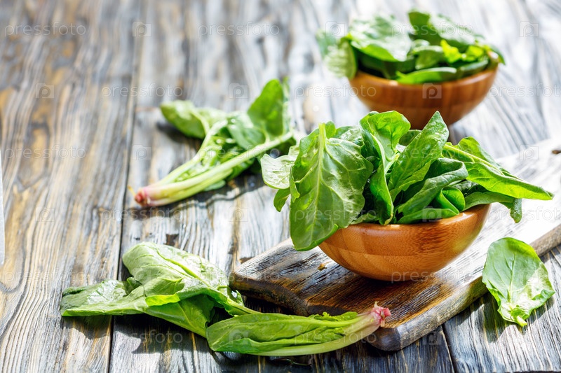 Деревянные миски с листьями шпината