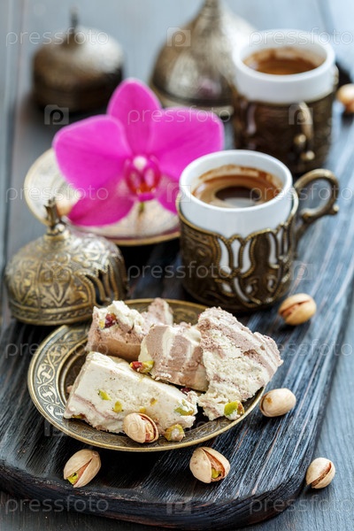 Тахинская халва с фисташками и турецкий кофе