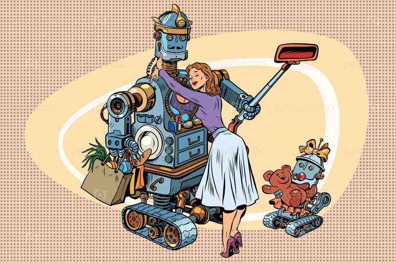 Робот, девушка и ребенок-робот