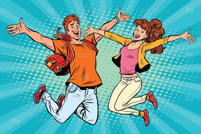 Пара мужчина и женщина прыгают