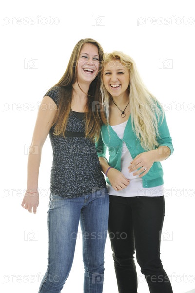 Две счастливые девушки, изолировнаы на белом