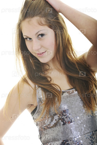 Счастливая девушка, изолировано на белом фоне, студийный портрет