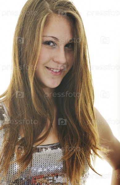 Счастливая девушка, изолировано на белом фоне, студийный портрет