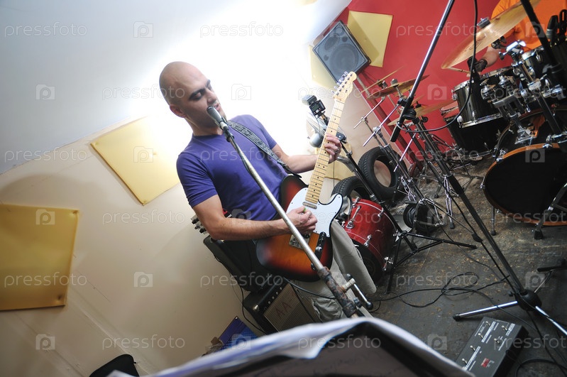Молодой музыкант репетирует в гараже