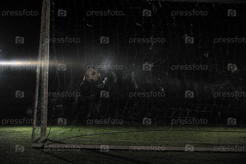 Вратарь на поле, ночь, дождь