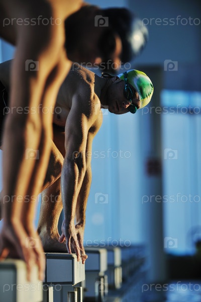 Пловцы на старте в бассейне