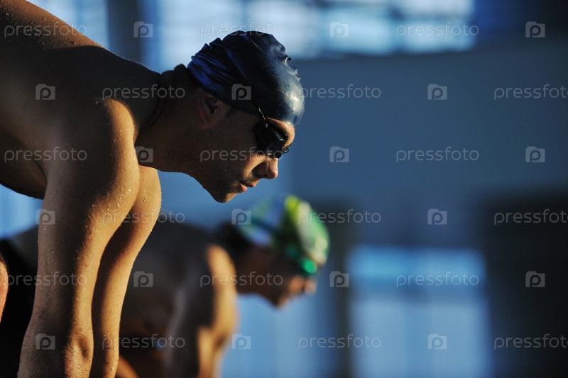 Пловцы на старте в бассейне