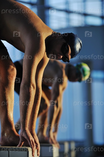 Пловцы на старте в бассейне