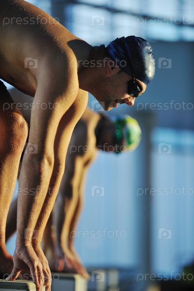 Пловцы на старте в бассейне