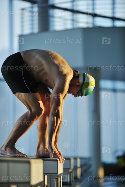 Пловец на старте в бассейне