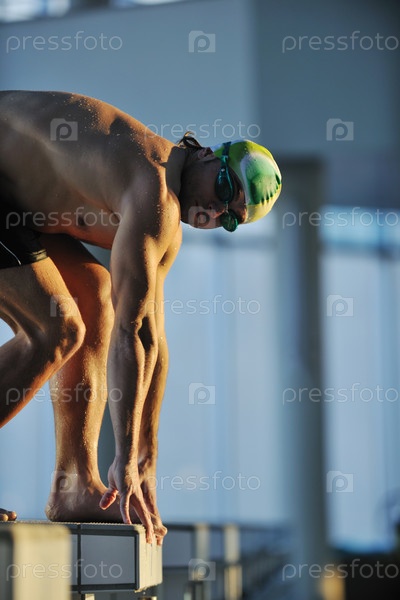 Пловец на старте в бассейне