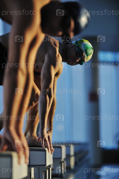 Пловцы на старте в бассейне