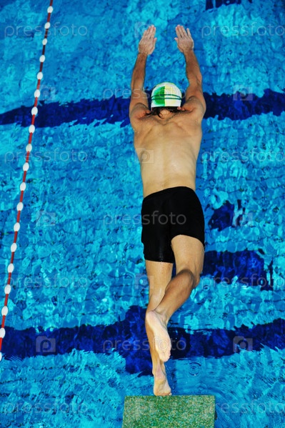 Пловец на старте в бассейне