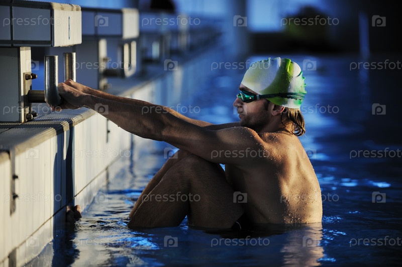 Пловец на старте в бассейне