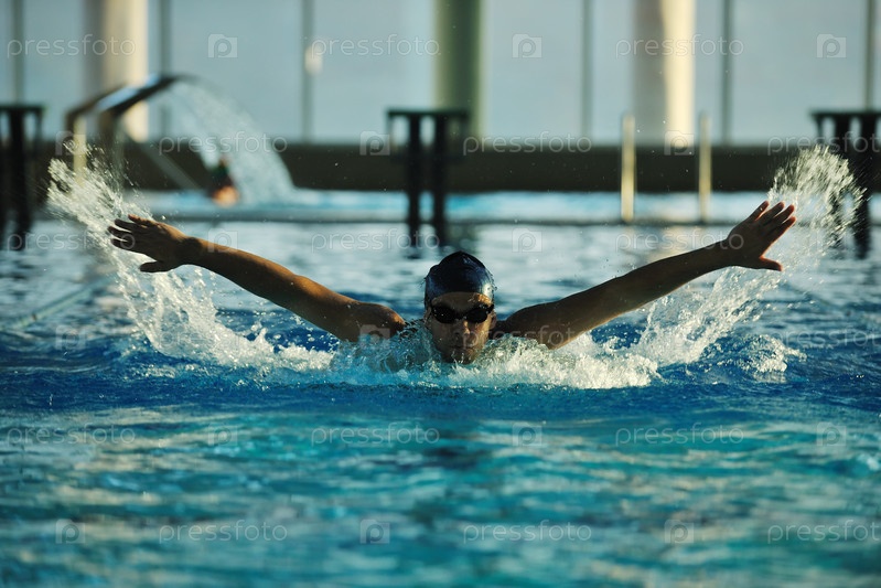 Молодой пловец в олимпийском бассейне