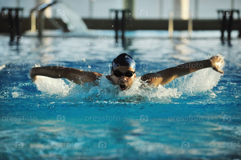 Молодой пловец в олимпийском бассейне