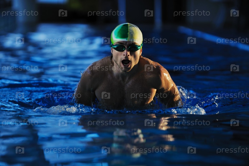 Молодой пловец в олимпийском бассейне