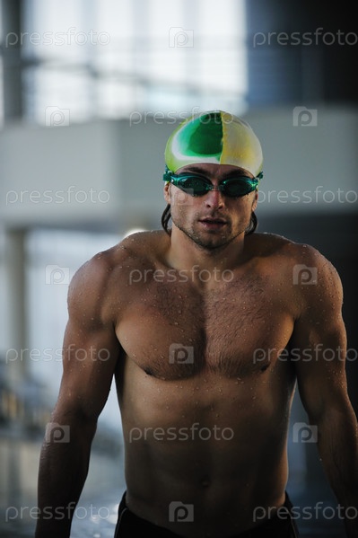 Молодой пловец в олимпийском бассейне