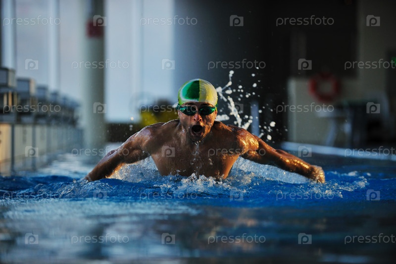 Молодой пловец в олимпийском бассейне