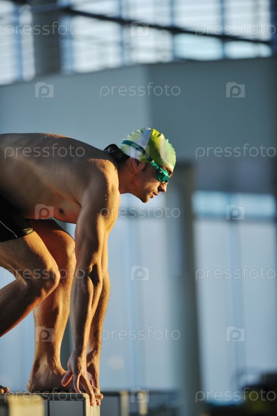 Молодой пловец в олимпийском бассейне