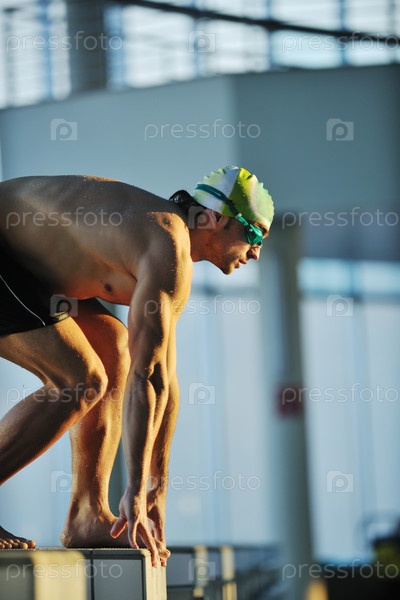 Молодой пловец в олимпийском бассейне