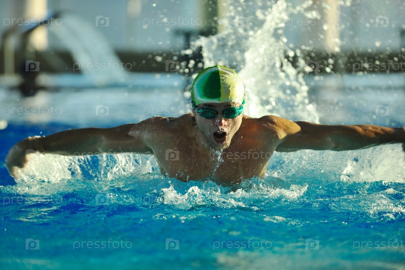 Молодой пловец в олимпийском бассейне
