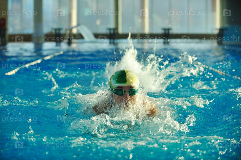 Молодой пловец в олимпийском бассейне