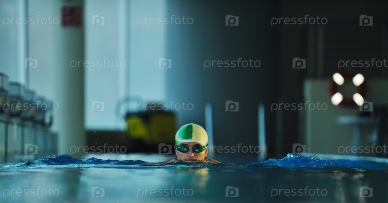 Молодой спортсмен в олимпийском бассейне