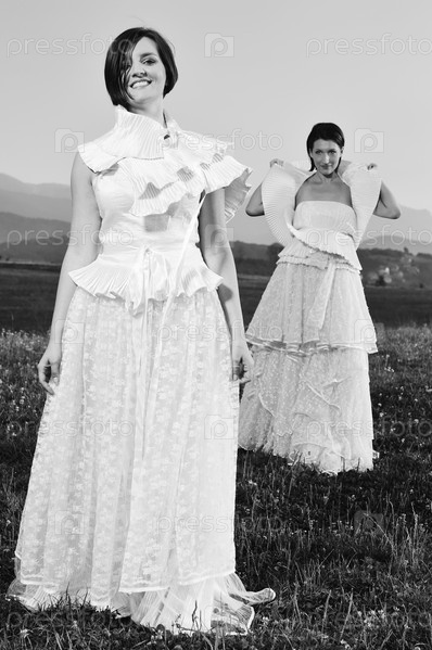 Невесты в поле на закате