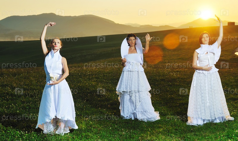 Невесты в поле на закате