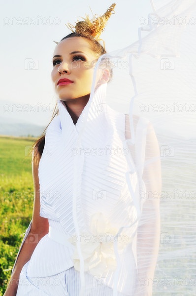 Невеста в поле на закате