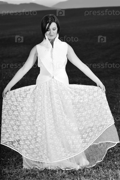 Невеста в поле на закате