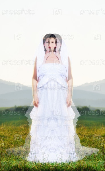 Невеста в поле на закате