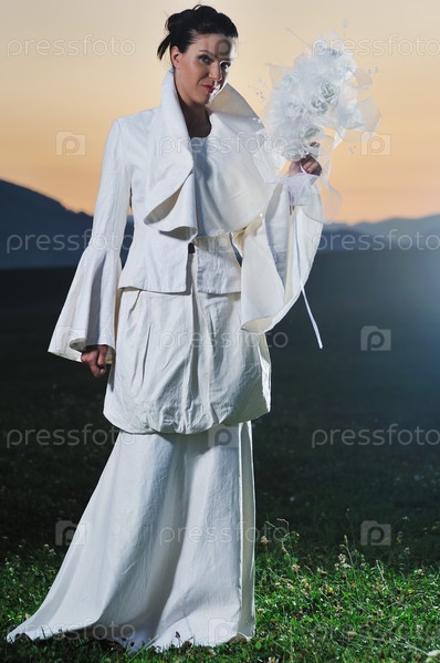 Невеста в поле на закате