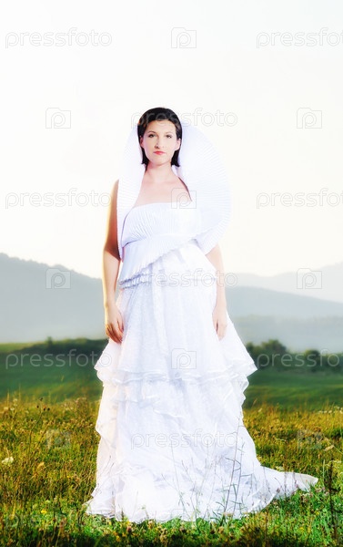 Невеста в поле на закате