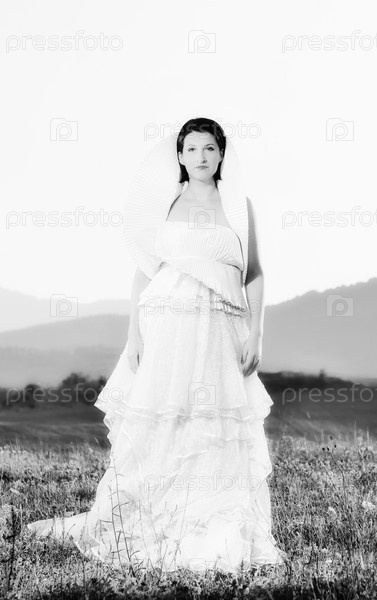 Невеста в поле на закате