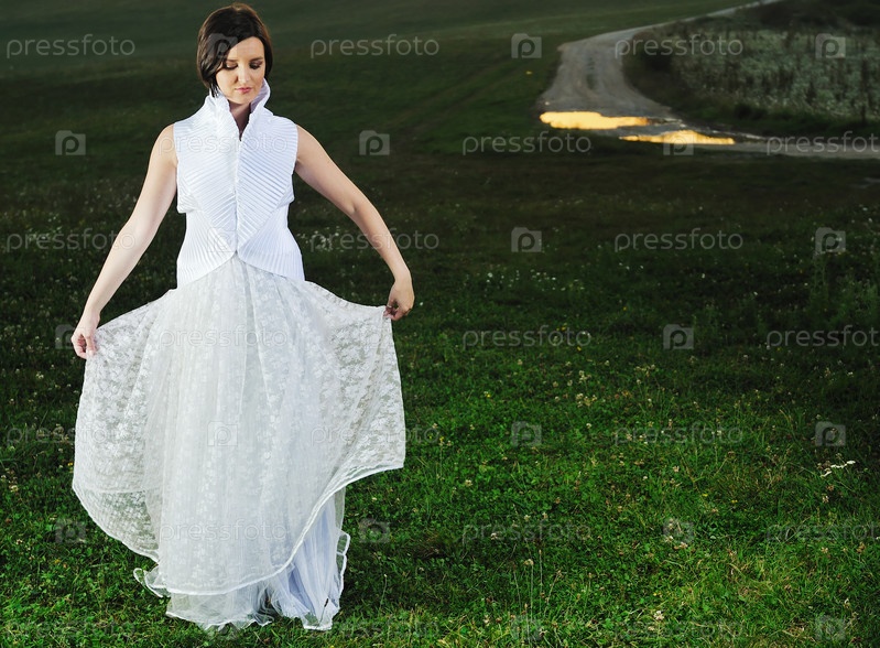 Невеста в поле на закате