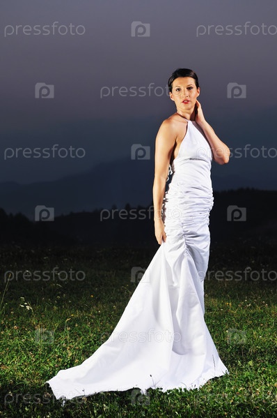 Невеста в поле на закате