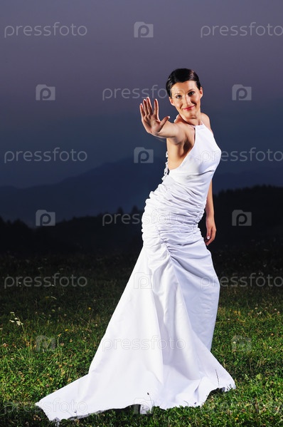 Невеста в поле на закате