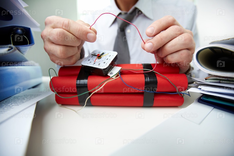 Бизнесмен с динамитом в офисе