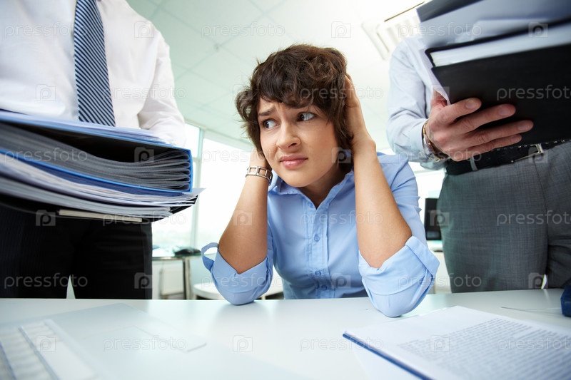 Деловая женщина, озадаченная большим количеством работы