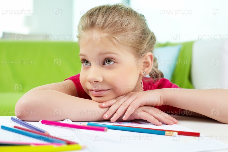Девочка рисует, сидя за столом