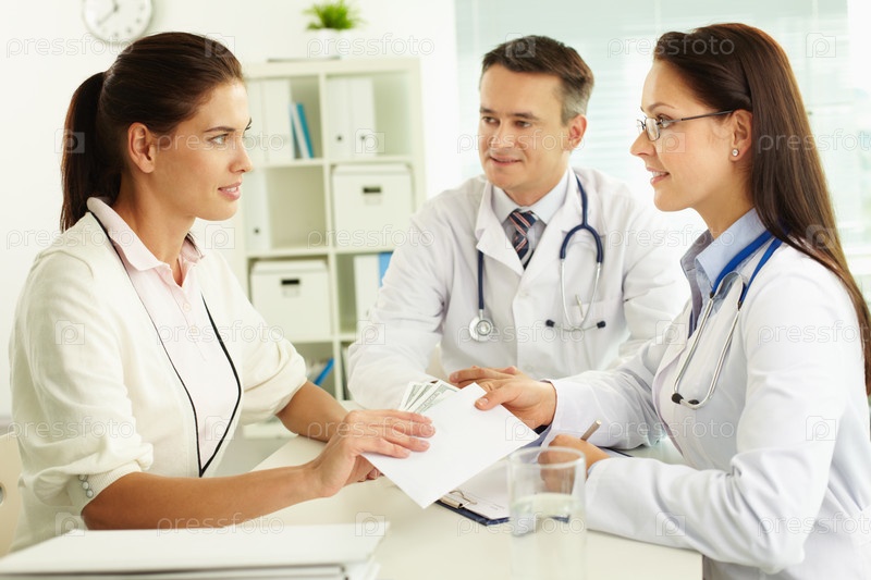 Женщина-врач получает зарплату