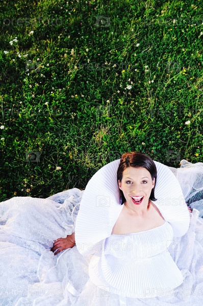 Счастливая молодая красивая невеста на открытом воздухе
