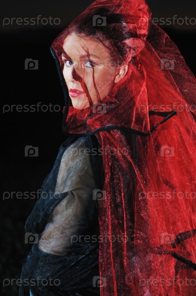 Молодая красивая невеста в черном свадебном платье, ночь